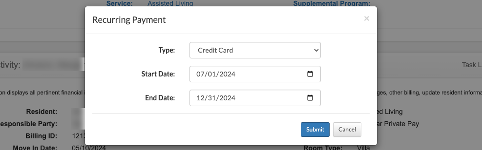 In this article, we will discuss the steps required to set up a recurring payment on a resident profile in Aline Revenue. Recurring payments will feed into the Aging Report and bulk payments.