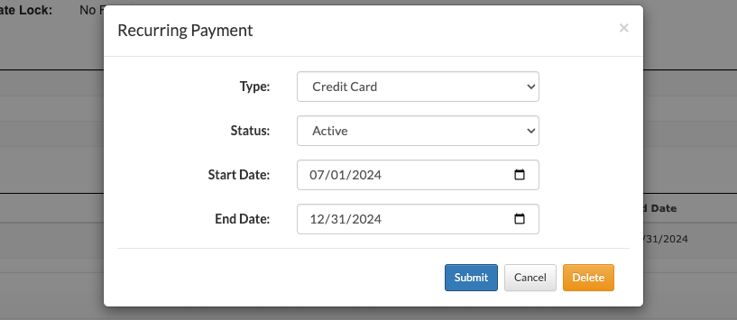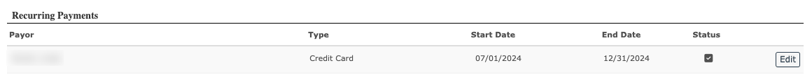 Please note: recurring payments can also be edited, or deleted, by selecting "Edit" on the existing recurring payment.