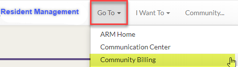 Step 4: Once on the Community page, click the Go To tab, then select Community Billing.