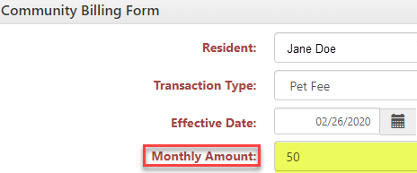 Step 9: Enter the Monthly Amount the resident is to be billed for the transaction.