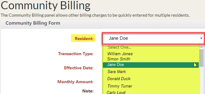 Step 6: Select the appropriate resident from the Resident drop-down.