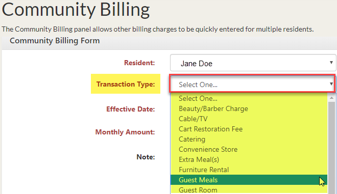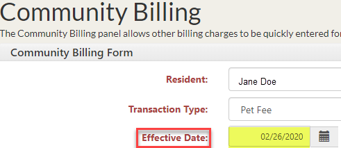 Step 8: Enter the Effective Date on which the resident is to be billed for the transaction.