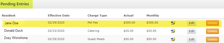 Step 11: After submitting the Community Billing Form, the entry will appear under Pending Entries.