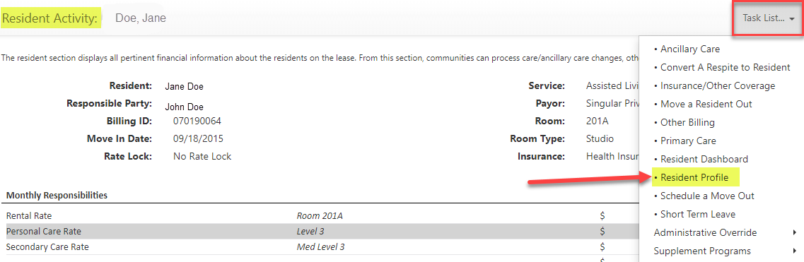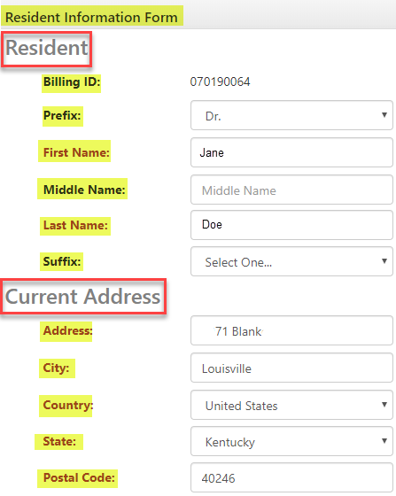 Step 9: On the Resident Profile page, scroll down to the Resident Information Form.