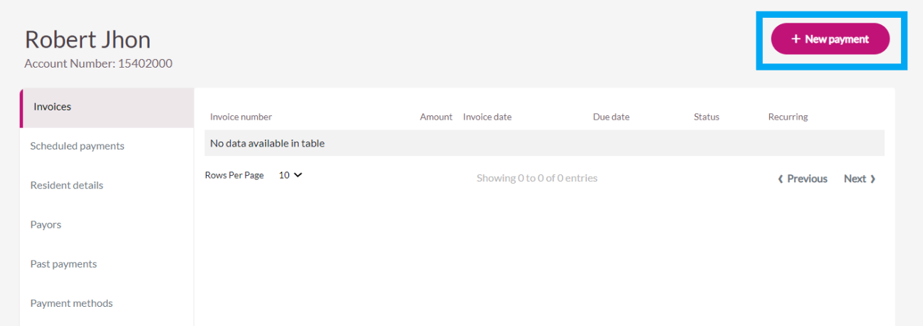 Step 2: Click “New Payment” in the upper right-hand corner of the page