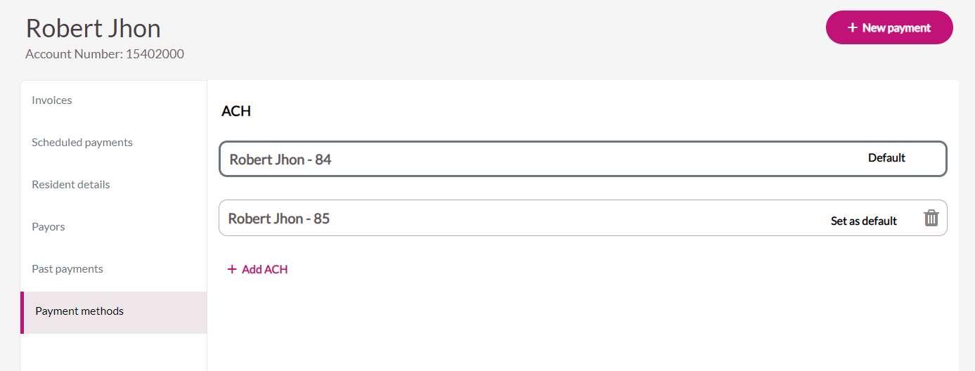 Step 1: Click “Payment Methods” tab in the resident’s profile