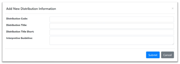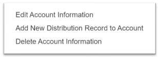 Step 2: Select Add New Distribution Record to Account, enter the Distribution Information, and select Submit.