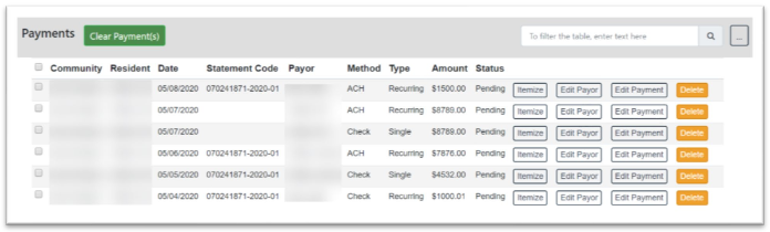 Step 2: On the Manage Payments Page, select the payment you would like to itemize by selecting Itemize Payment.