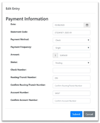 Step 3: After selecting the Edit Payment button, the Edit Entry Modal will appear. Make the desired changes and select the Submit button.