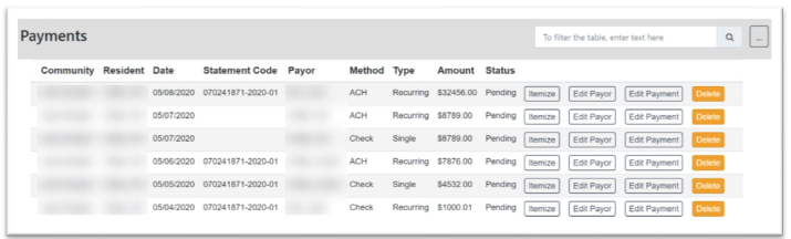 Step 2: On the Resident Payment Page, select the Edit Payment button on the payment you would like to edit.