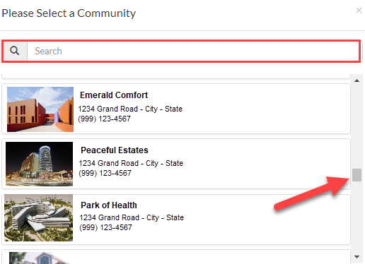 Step 3: Use the Please Select a Community window to find the appropriate community.