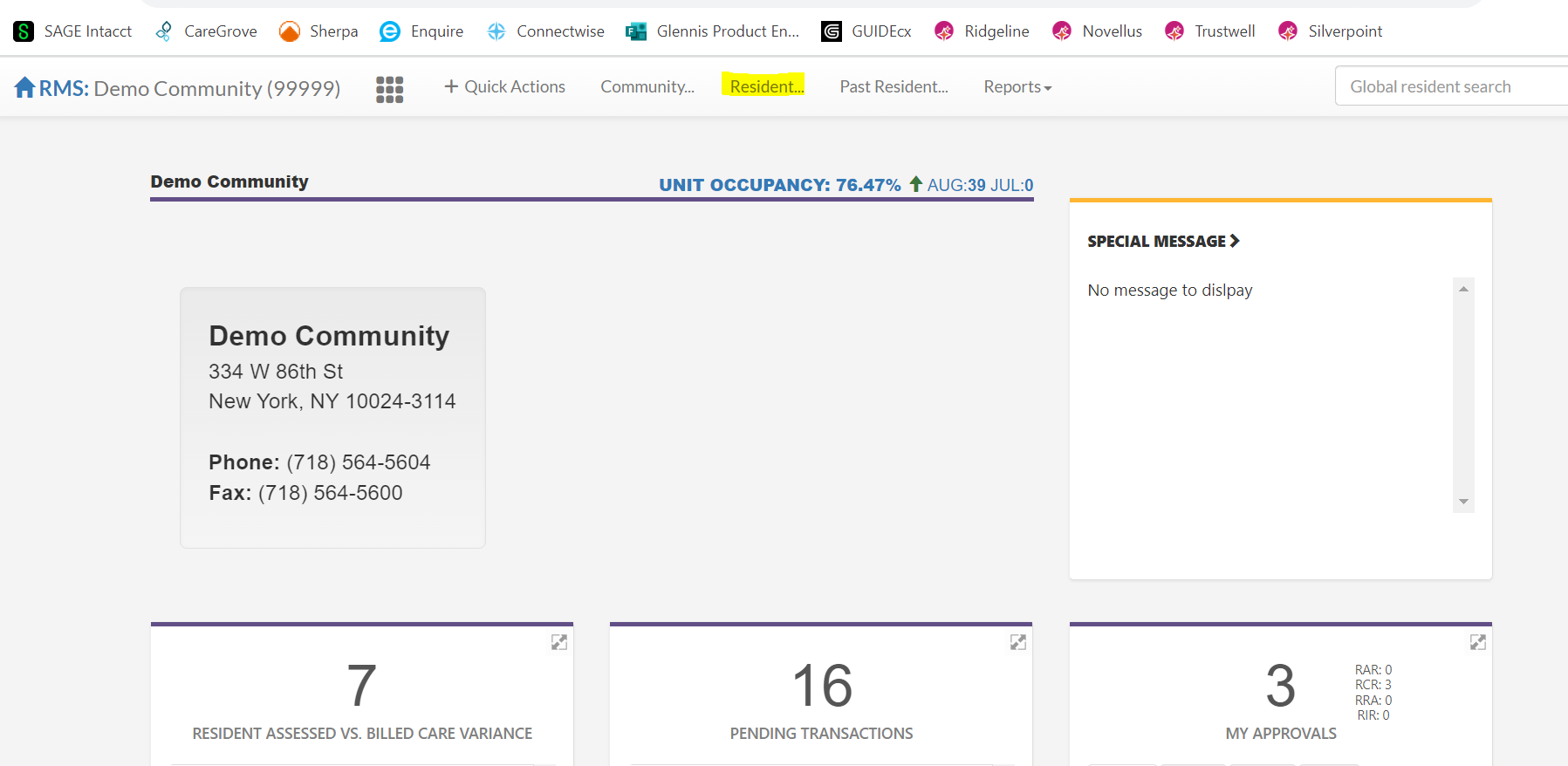 Step 1: From your community home page, click resident and select the resident who is moving out.