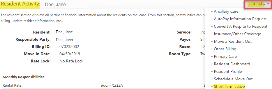 Step 7: On the resident’s Lease Management page, scroll down to the Resident Activity section of the page.