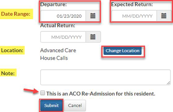 Step 10: If necessary, add/change the location by clicking Add Location or Change Location. The location could be a rehab, hospital, etc.