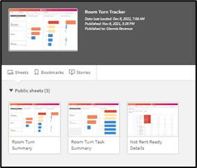 Each App will contain multiple sheets. For example, the Room Turn Tracker app contains three sheets: Room Turn Summary, Room Turn Task Summary, and Not Rent Ready Details.