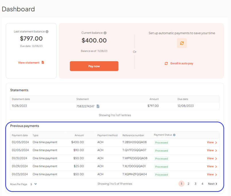 Step 1: Users can easily access their complete payment history within the dashboard by navigating to the payment history section.