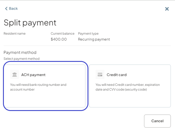 In the next screen users will click on ‘ACH Payment’ to proceed.