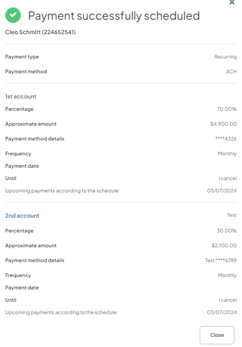 Users will have the option to either schedule recurring payments using one account or to split the payments across two different accounts.