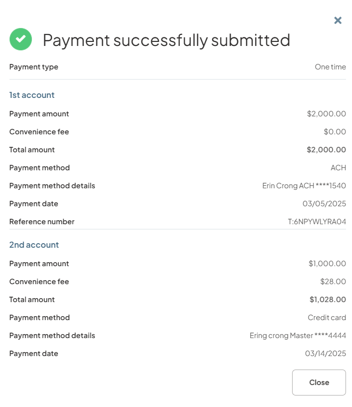 Step 7: Receive a confirmation that your one-time payment was successful