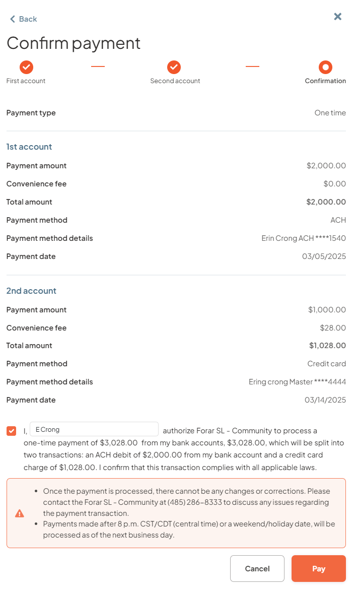 - Step 5: Review the payment confirmation screen to ensure everything is correct, provide payment authorization, and then click "Pay"