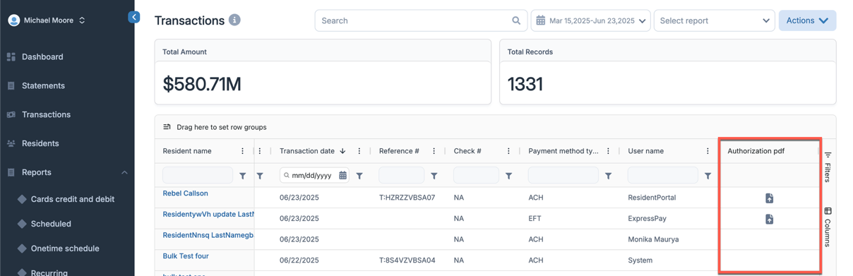 The transaction report now includes PDF documentation of digital authorizations.Digital authorization documents are automatically attached as PDFs to eachapplicable transaction. This significant enhancement allows users to access and review the complete digital authorization records directly within the transaction report.